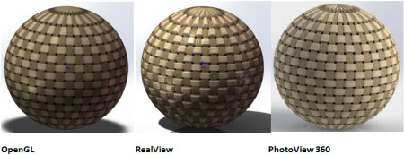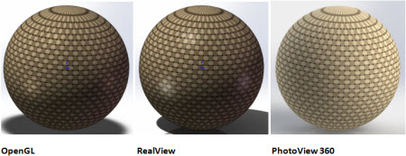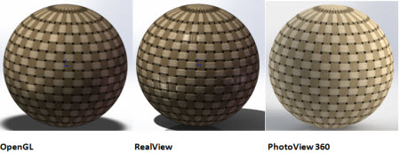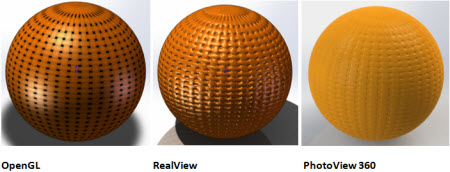 This is how my visualization modes now display the appearance. OpenGL remains the same and PhotoView 360 has a much more realsitic represenation than RealView.
