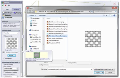 On the Color/Image tab in the appearance editor I’ll browse to a new image file and choose an image of a weave pattern.
