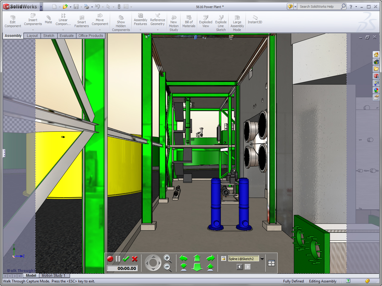 : You can use the new walk-through functionality inside SolidWorks to navigate through your design at fixed eye (camera) height off a base of reference surface. Simply walk-though to examine and explain your design or capture a video of your journey. This functionality is great for exploring large machines, plants, heavy equipment but is also capable of understanding smaller designs like PCBs, control panels, or other intricate designs, etc.