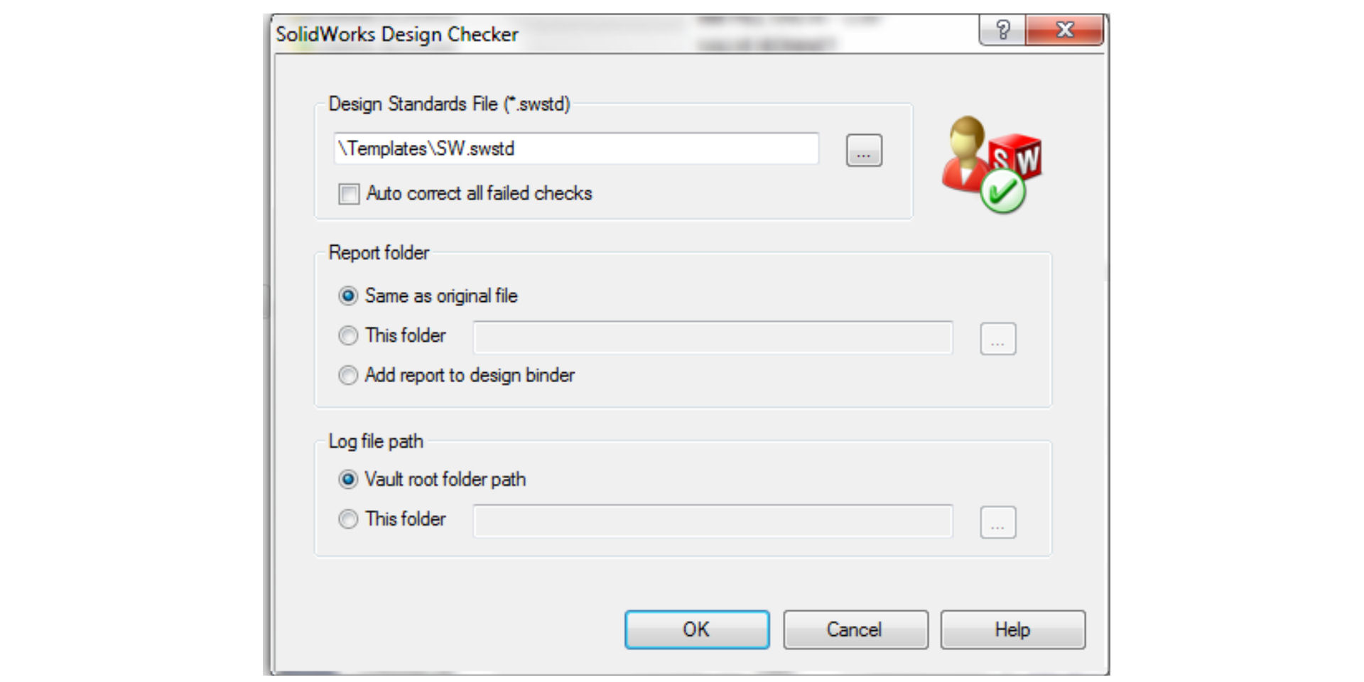 : Users can use the new Design Checker task inside the Administration Tool of Enterprise PDM to validate selected SolidWorks documents in the vault against standards created in Design Checker.