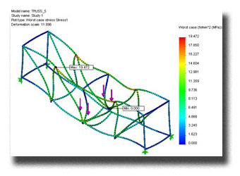 | Use SolidWorks Simulation to analyze different loading conditions of the bridge. | |||||||||||||