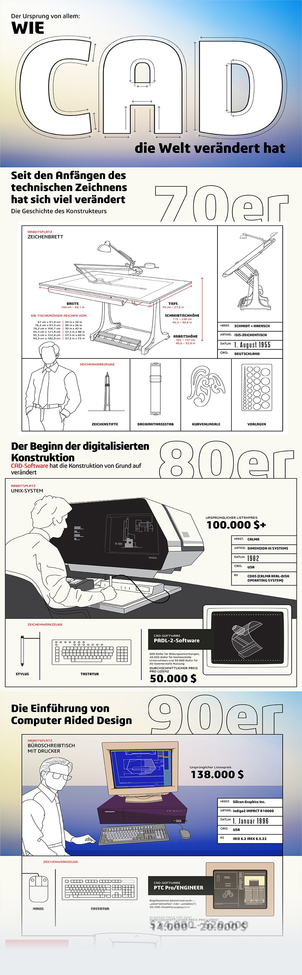 Entdecken Sie die faszinierende Entwicklung der CAD-Software und ihren revolutionären Einfluss auf die Konstruktion mit unserem umfassenden Blick auf die Geschichte der modernen Konstruktion. Von den Anfängen mit Zeichentischen hin zu hochmodernen KI-gestützten Werkzeugen von heute wurde die 3D-Konstruktion durch SOLIDWORKS revolutioniert und ist nun für Branchen und Entwickler weltweit zugänglich. Erfahren Sie, wie diese leistungsstarke Software Konstrukteuren zu Innovationen in Bereichen wie Industrieanlagen, Robotik und Konsumgüter verholfen hat und gleichzeitig eine lebendige globale Gemeinschaft aus Anwendern, Lehrkräften und Enthusiasten gefördert hat. Entdecken Sie die Zukunft der Konstruktion. SOLIDWORKS integriert KI und maschinelles Lernen, um Arbeitsabläufe zu optimieren und neue Möglichkeiten für die nächste Generation von Entwicklern zu erschließen. Wie hat CAD die Welt revolutioniert? Erfahren Sie es in dieser Infografik.
