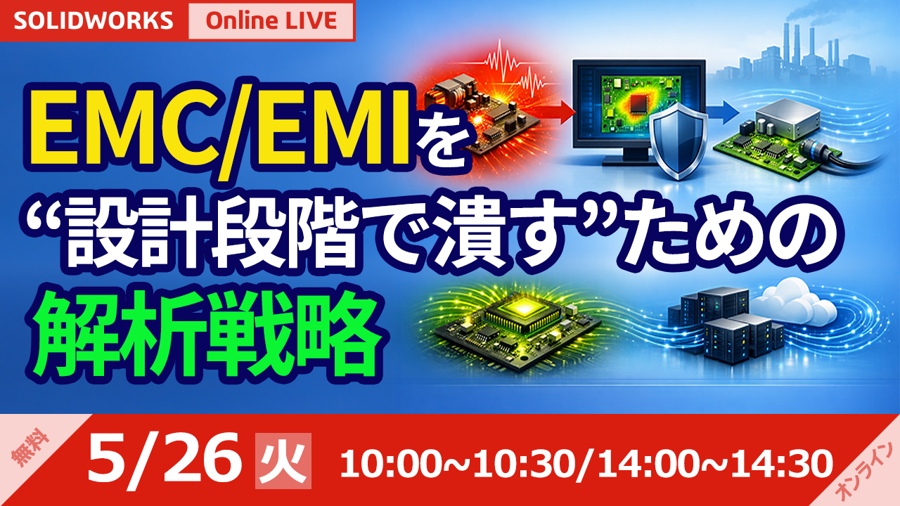 | CAE | SOLIDWORKSユーザーに聞いた、電磁界解析でやってみたい事とは・・・? アンケートで関心の高かった、高周波・伝導等の電磁界解析について事例を用いて解説します |