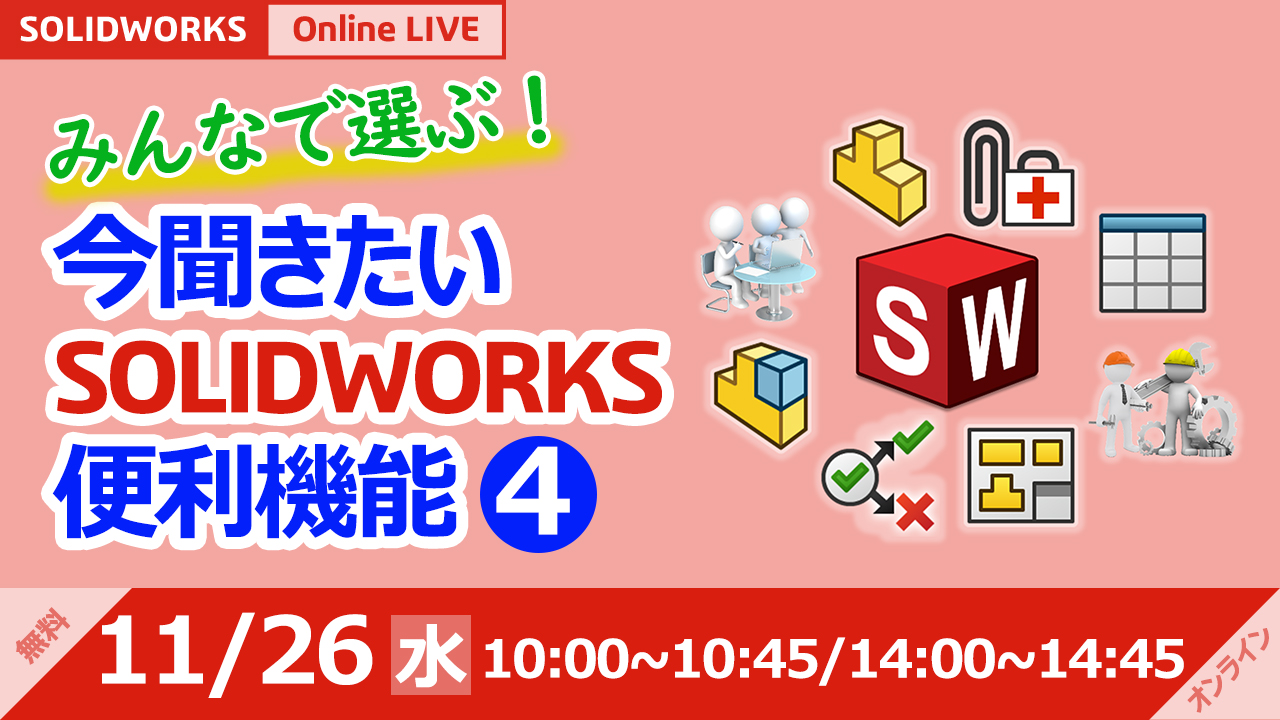 | 便利な機能やテクニック | みんなで選ぶ!今聞きたいSOLIDWORKS便利機能2 事前アンケートでリクエストの多かったCADの便利機能をご紹介する人気セッション第2弾です |